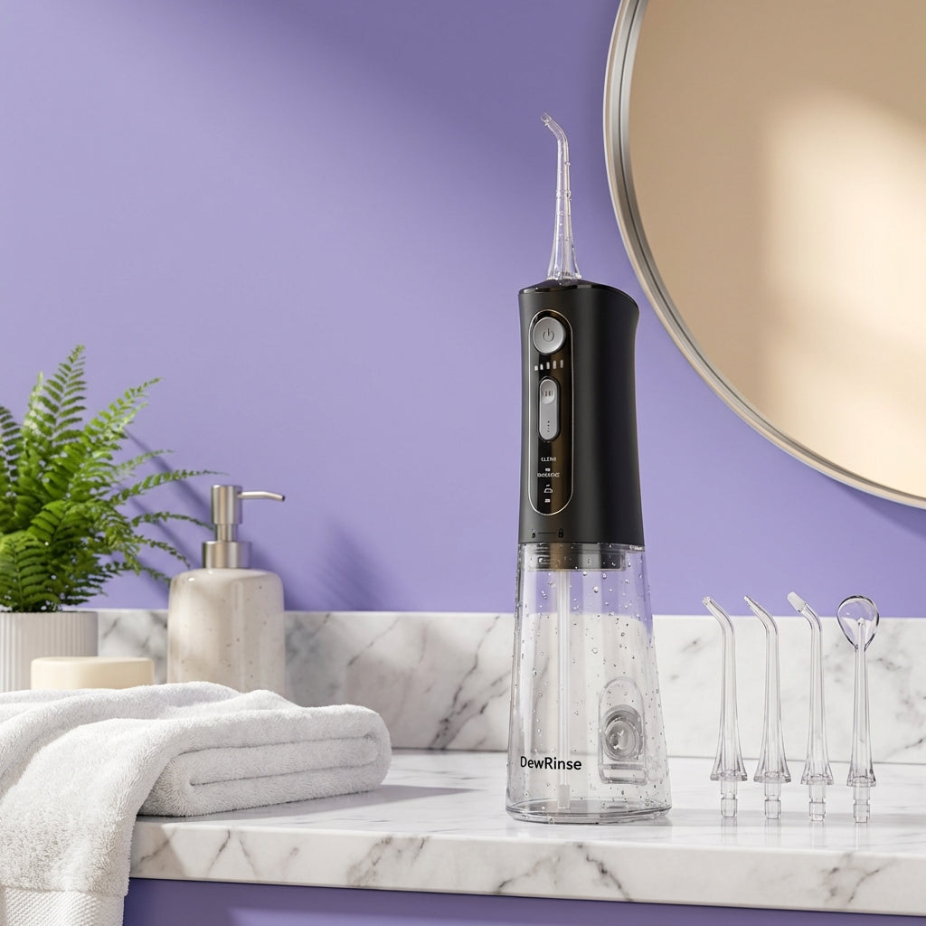 Two things. First, most people use water flossers on their teeth — not their tongue. The tongue is where 43% of all bad breath originates, and it is almost never the target. Second, DewRinse includes a dedicated tongue cleaning tip specifically engineered to direct pulsating pressure across the tongue surface and between papillae. Without that tip, you're solving the wrong surface.